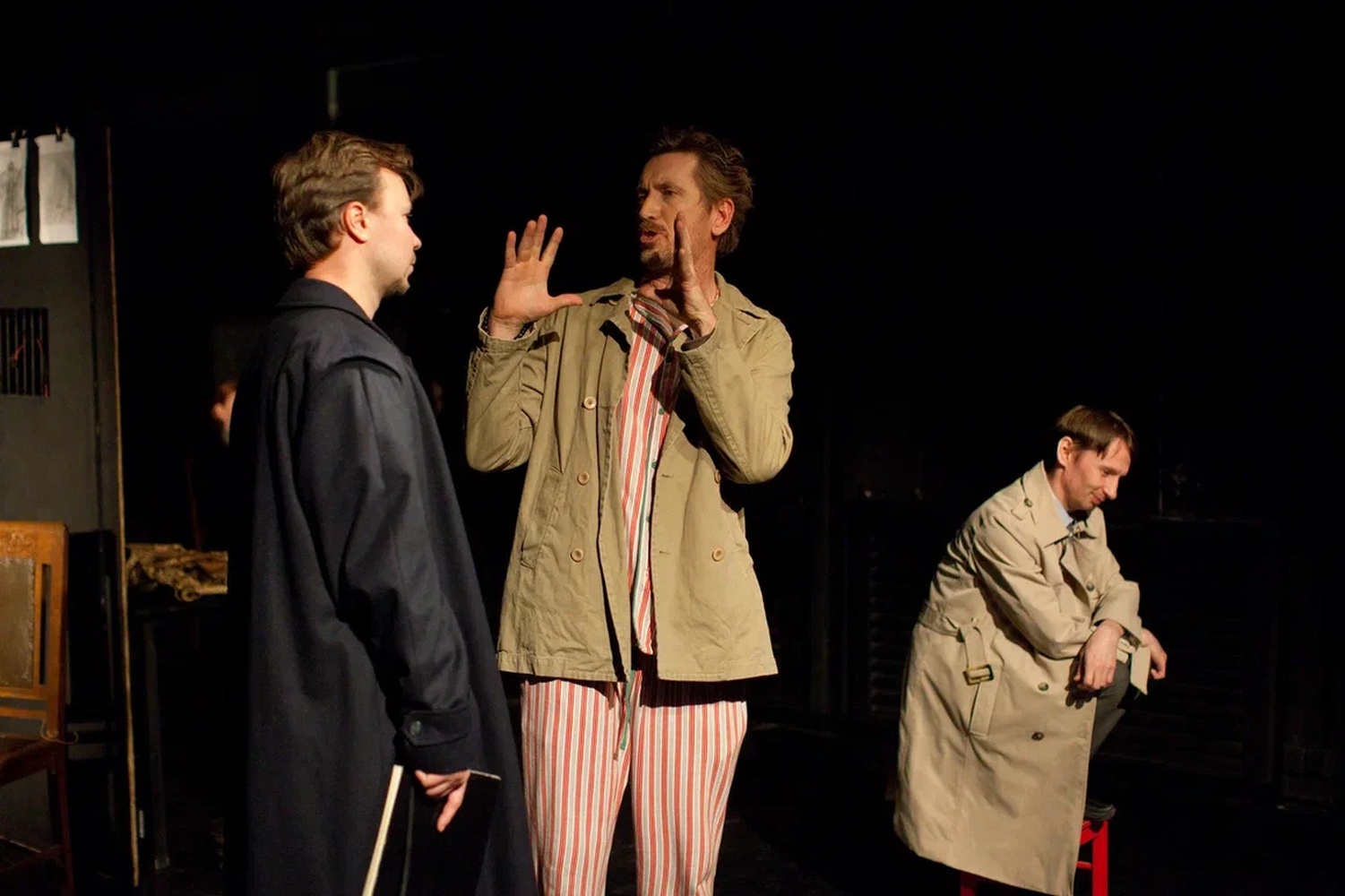 События спектакля разворачиваются одновременно в разных пространствах.
